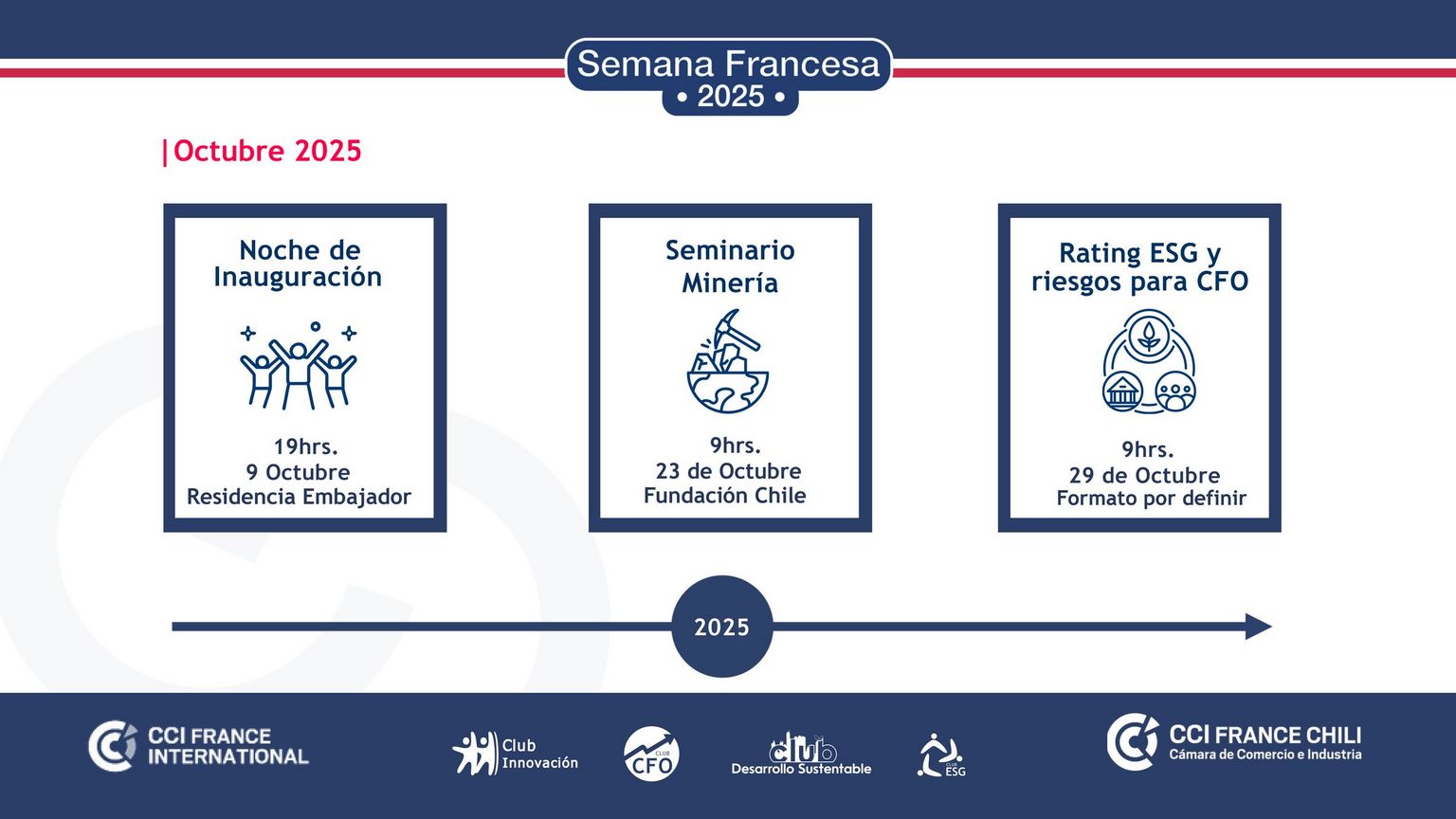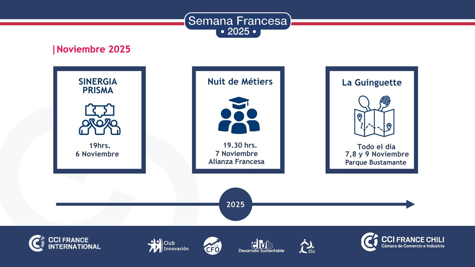 Este año la CCI France-Chili tiene el orgullo de dar inicio a una nueva edición de la Semana Francesa en Chile, una tradición que refleja el valor de nuestra Cámara y su rol en la construcción de una comunidad activa y comprometida.
