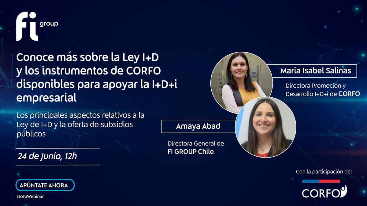 FI Group junto con CORFO se llevará a cabo en un seminario web especial, para presentar sobre los principales aspectos relacionados con la Le de I + D y la oferta de subsidios públicos.