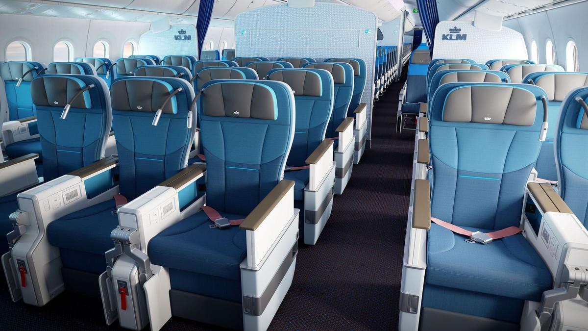 Los nuevos asientos de Premium Comfort Class fueron diseñados por Collins Aerospace, junto con especialistas de KLM Customer Experience. Además de tener un elegante diseño y características de confort, los asientos son más ligeros que los diseños anteriores.