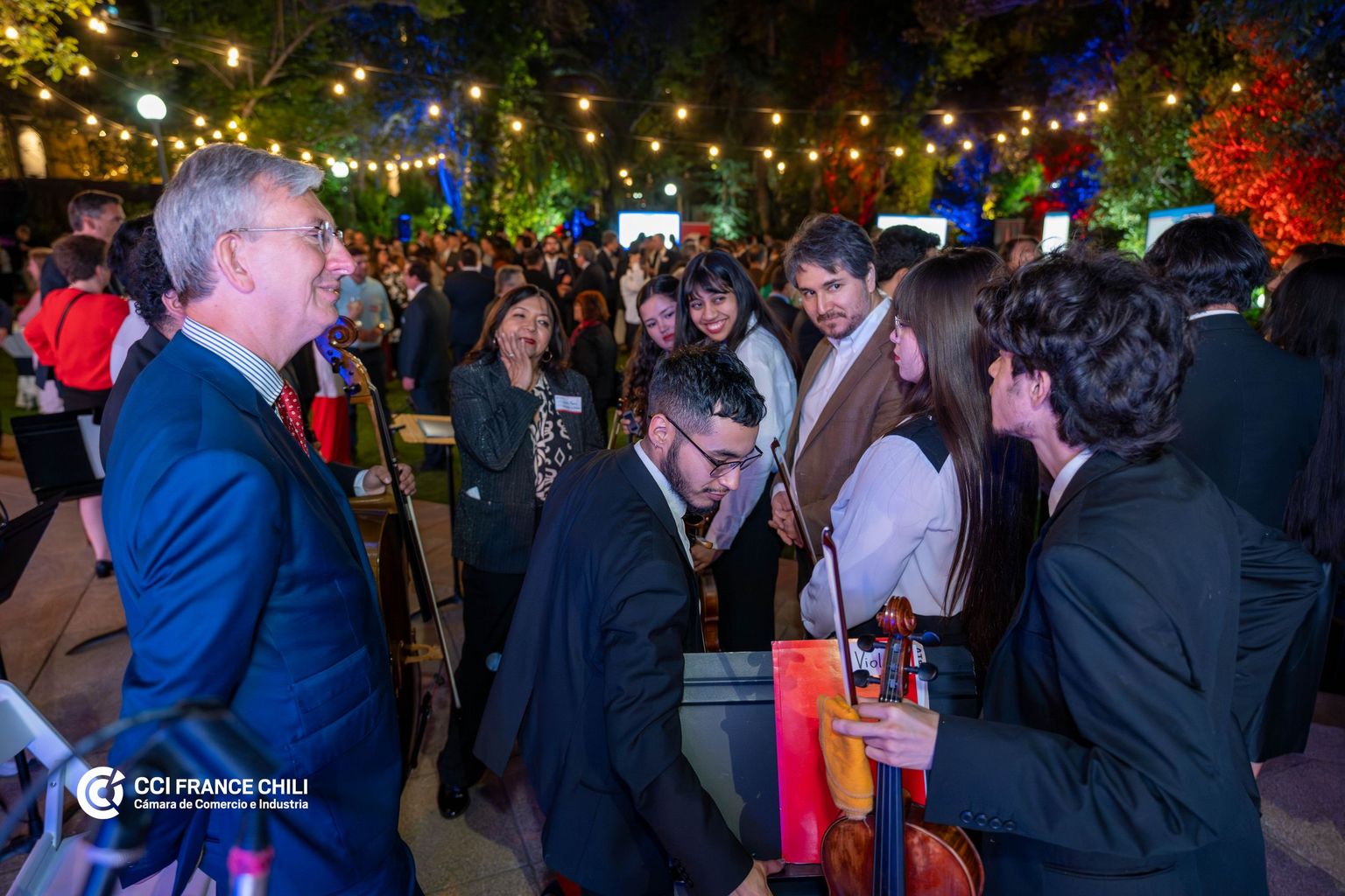 La noche contó con la participación de autoridades, representantes del sector privado y líderes del ecosistema franco-chileno. Los asistentes disfrutaron de un coctel Franco -chileno confeccionando por nuestro socios Sodexo, Lactalis y Baron Philippe. También contamos con una emotiva actuación de la Orquesta Juvenil Municipal de La Pintana, proyecto artístico y social impulsado por la ecosistema francófono, que simboliza los valores de integración y colaboración cultural que inspiran esta edición.