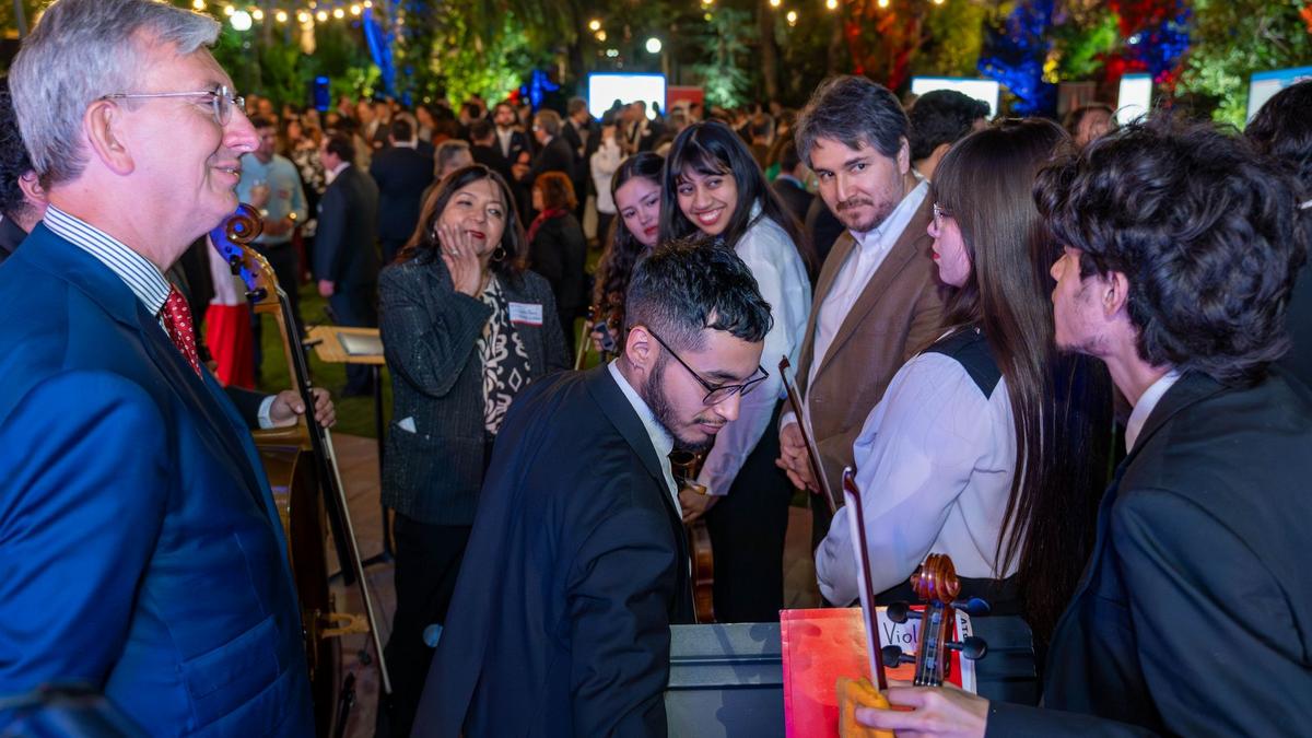 La noche contó con la participación de autoridades, representantes del sector privado y líderes del ecosistema franco-chileno. Los asistentes disfrutaron de un coctel Franco -chileno confeccionando por nuestro socios Sodexo, Lactalis y Baron Philippe. También contamos con una emotiva actuación de la Orquesta Juvenil Municipal de La Pintana, proyecto artístico y social impulsado por la ecosistema francófono, que simboliza los valores de integración y colaboración cultural que inspiran esta edición.