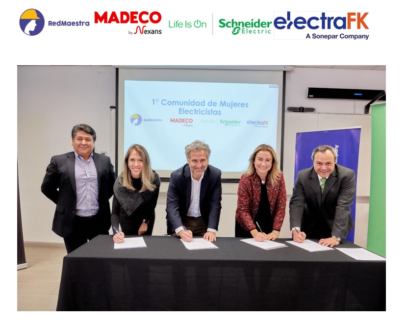 MADECO BY NEXANS, SCHNEIDER Y SONEPAR FIRMAN ALIANZA CON REDMAESTRA PARA CREAR LA PRIMERA COMUNIDAD DE MUJERES ELECTRICISTAS DEL PAÍS