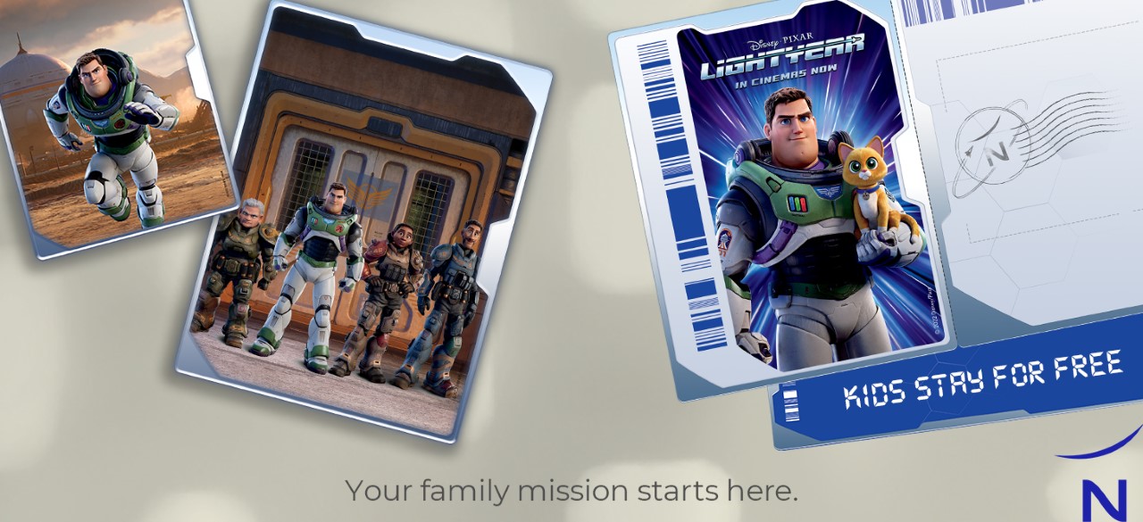 Como parte de la colaboración de Novotel con LIGHTYEAR de Disney y Pixar, los hoteles participantes ofrecerán una serie de actividades “de otro mundo” para las familias hospedadas. Cuando los niños lleguen al Novotel para sus vacaciones, serán sorprendidos con una variedad de cartas, juegos y adhesivos de LIGHTYEAR de Disney y Pixar, para colorear. Cada miembro de la familia recibirá su propio pase de abordar, invitándolo a embarcar en una