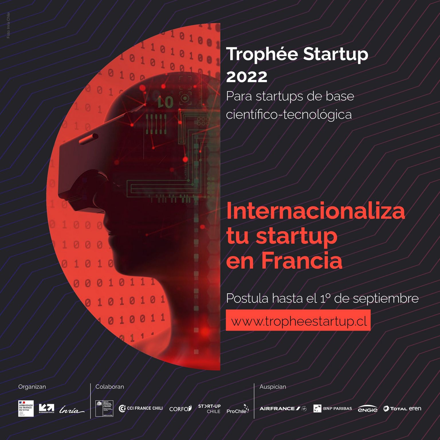 La Embajada de Francia en Chile, Business France e Inria Chile lanzan la convocatoria al concurso anual Trophée Startup 2022. Este llamado busca detectar a las startups chilenas de base científico-tecnológica, en todas las áreas de actividad,con un potencial importante de crecimiento y de internacionalización en el mercado francés.