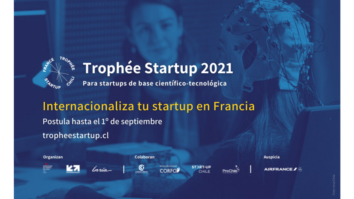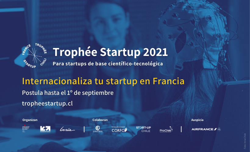 Con el fin de promover la internacionalización de startups chilenas de base científico-tecnológica en Francia, la Embajada de Francia en Chile, Business France, el Instituto Francés de Chile e Inria Chile, con la colaboración de la Cámara Franco-Chilena de Comercio, Corfo, Startup Chile y Prochile, lanzan las postulaciones a la versión 2021 del concurso anual TROPHÉE STARTUP.