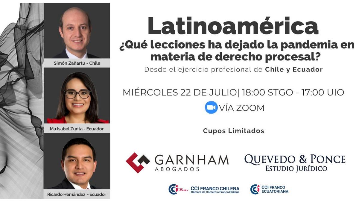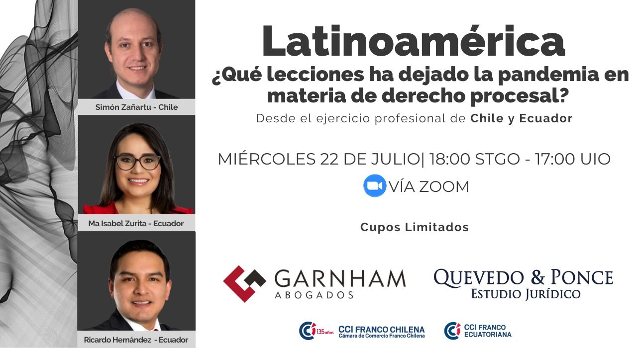 Este miércoles 22 de julio se realizará el webinar, Latinoamérica ¿Qué lecciones ha dejado la pandemia en materia de derecho personal?, con la participación de Simón Zañartu, María Isabel Zurita y Ricardo Hernández, desde las 18ºº horas Santiago.